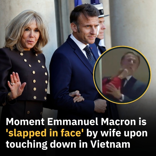 A video has shown Emmanuel Macron get pushed in the face by his wife upon touching down in Vietnam for a state visit.